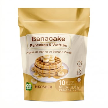 Also, our PANCAKE mixes are ready-to-use dry mixes for pancakes and waffles, made with green banana flour as its main ingredient. They offer a practical, nutritious, and functional alternative to traditional wheat-based mixes. Its formulation allows for end-products with a soft texture, stable structure, and slightly neutral flavor, making it easy to combine with sweet or savory ingredients. Just add water or milk for preparation, guaranteeing ease of use, standardization of the final result, and optimal performance for restaurants and hotels.